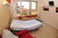 Als erstes Ergebnis wurde Anfang dieses Jahres mit dem Umbau und der Gestaltung eines Begleitzimmers begonnen. Es ermöglicht, dass Patienten im letzten Lebensabschnitt eine würdevolle Rückzugsmöglichkeit haben und die Angehörigen sich in aller Ruhe und in einem familiären Rahmen von ihnen verabschieden können. Das Begleitzimmer ist eine Einheit aus zwei Räumen, die mit einer Tür verbunden sind. Beide Zimmer sind liebevoll ausgestattet und bieten auch Platz für persönliche Gegenstände. Eines der beiden Zimmer ermöglicht den Angehörigen, sich auszuruhen und trotzdem in unmittelbarer Nähe zum Patienten zu verbleiben.