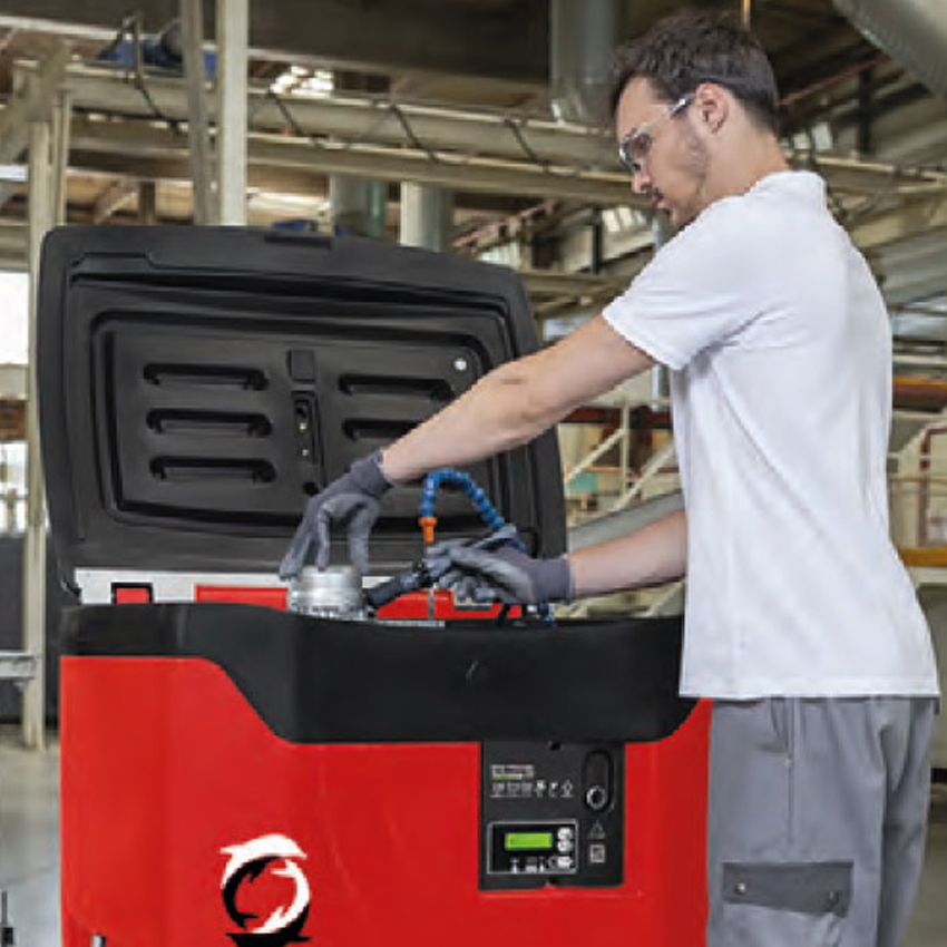 Das Prinzip des neuartigen Teilereinigers ist dabei so simpel wie genial. Der AqoaClean Delphi funktioniert dank der Synergie zwischen der nicht toxischen und nicht entflammbaren Reinigungsflüssigkeit und den Mikroorganismen in den AqoaClean Tabs, welche die Verschmutzungen in der Reinigungsflüssigkeit biologisch abbauen. Dadurch hat das Gerät einen reduzierten Verbrauch und muss weniger gewartet werden. Die Nutzungsdauer wird länger und die Entsorgungskosten geringer. Dabei muss der Kunde nicht auf Leistung verzichten, denn das leistungsstarke Gerät arbeitet zuverlässig und effizient.