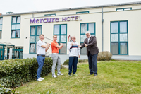 Bildunterschrift: Sie freuen sich auf die Zusammenarbeit im Mercure Tagungs- & Landhotel (v.r.): Hoteldirektor Walter Sosul, Eric Borges, Timo Thieler und Nick Hollubeck. Bild: makis-photography