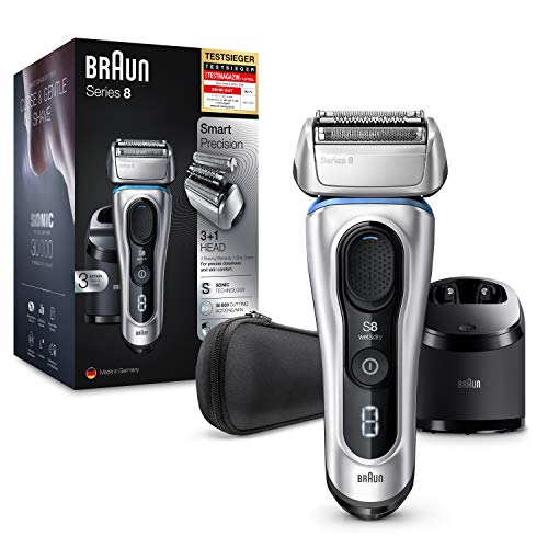 Platz 3 – Rasierer Serie 8 8370cc Elektrischer Rasierer, Reinigungs- und Ladestation, Stoff-Etui, Wet&Dry Elektrorasierer Herren, Rasierapparat mit Präzisionstrimmer, Lithium-Ionen-Akku