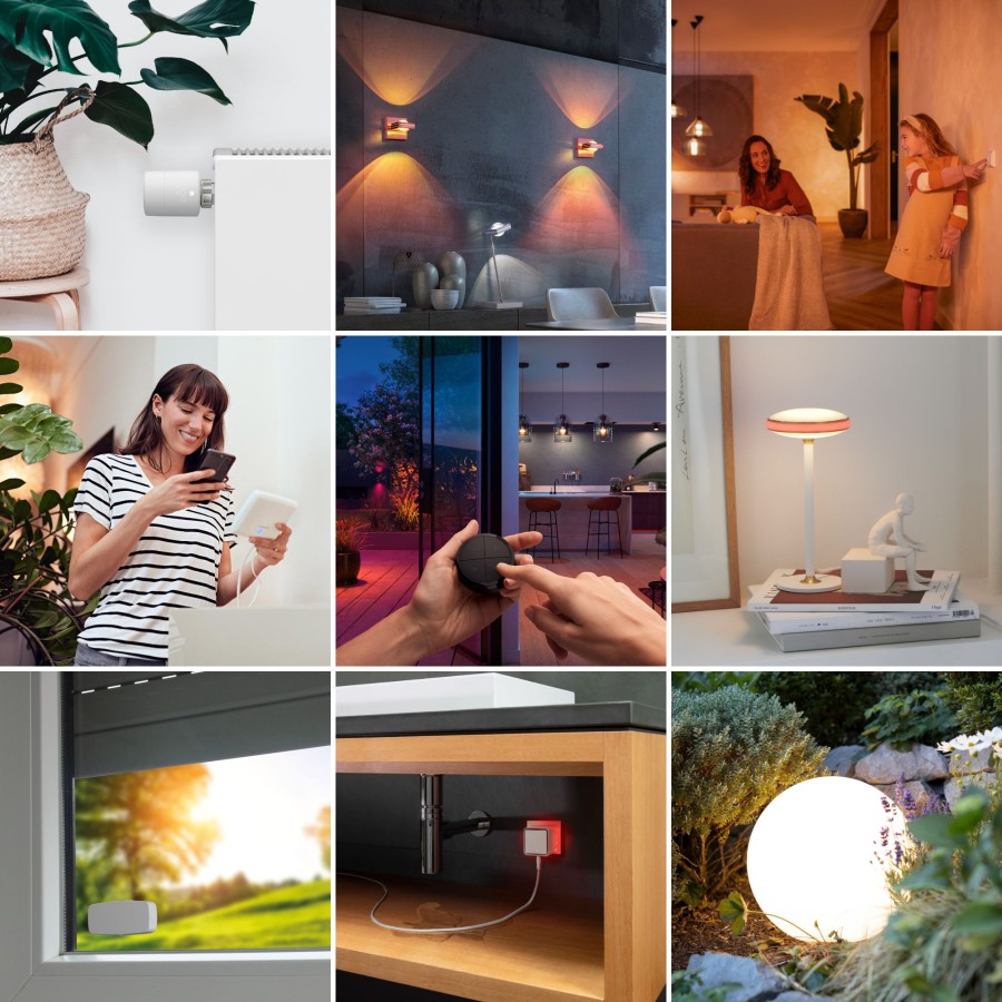 Das eigene Zuhause sicherer machen – dazu gehören verschiedenste Komponenten der smarten Steuerung. Angefangen von der Leuchte mit Außenkamera, die in Echtzeit Bildmaterial auf das Smartphone überträgt, bis zu Fenster- und Türsensoren, die einen möglichen Einbruch direkt per Push-Warnmeldung aufs Smartphone senden. Ebenfalls in die smarte Haussicherheit integrieren lassen sich smarte Rauch- und Wassermelder. So kann auch von unterwegs registriert werden, wenn es zuhause zu einem Rohrbruch oder Rauchentwicklung kommt. Für Zusammenkünfte mit mehreren Personen geben CO2-Warnmelder ein Signal aufs Smartphone, wenn es Zeit zum Lüften ist. Ebenfalls praktisch: Smarte Türschlösser, mit denen z.B. der Reinigungskraft über eine persönliche PIN Zutritt gewährt werden kann. Zur Sicherheit können die Türschlösser so programmiert werden, dass sie sich nachts verriegeln, was den Kontrollgang am Abend erspart.