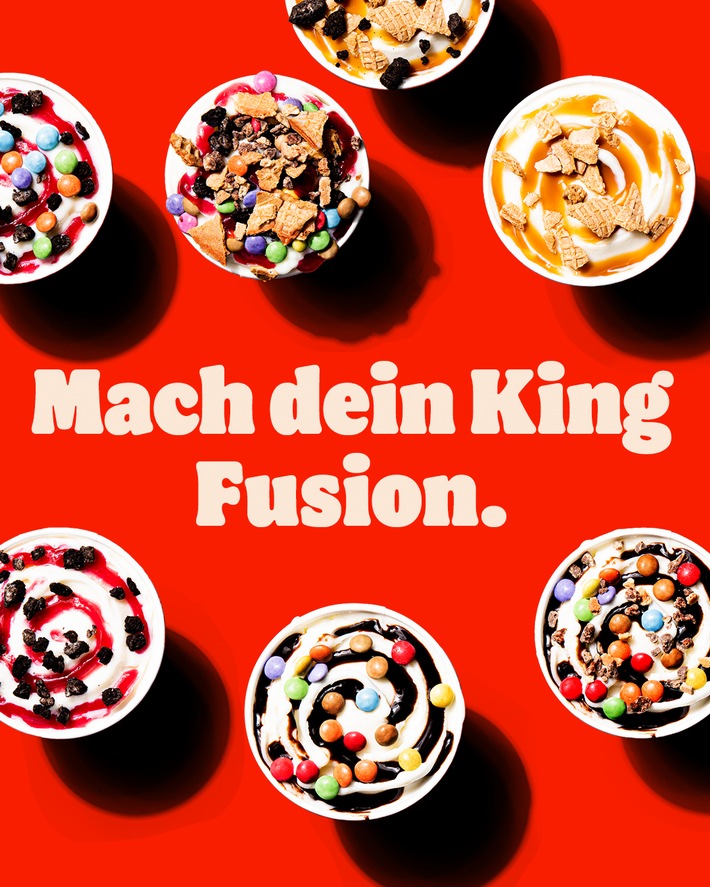 Die Einführung des neuen King Fusion Have it your way erweitert nicht nur das Eissortiment, sondern bringt auch eine Veränderung in der Zubereitung mit sich. Ab jetzt werden die Eissorten und King Shakes nicht mehr maschinell verrührt. Dies bietet die Vorteile, dass das Eis cremiger und länger fest bleibt und Eisfans die Toppings besser wahrnehmen können. Wer dann Lust bekommt, die Zutaten direkt zu naschen, kann dies vor dem Umrühren nun ganz einfach machen.