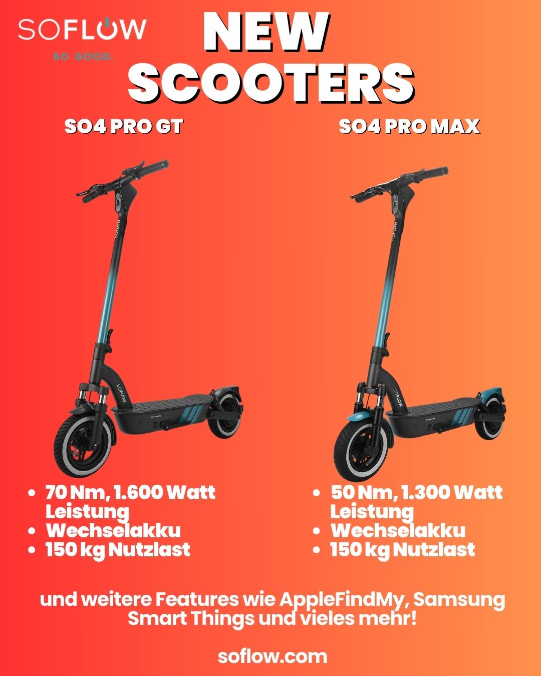 Zürich (CH), 10. März 2025 – SoFlow setzt neue Maßstäbe in der urbanen Mobilität mit zwei revolutionären E-Scootern, die Komfort, Leistung und smarte Technologie perfekt kombinieren. Der SO4 PRO GT ist das Flaggschiff-Modell von SoFlow und ist ab sofort vorbestellbar, während der SO4 PRO MAX als Alternative für den urbanen Alltag bereits in einer limitierten Stückzahl unter www.soflow.com erhältlich ist. Beide Modelle bieten höchste Leistung, Sicherheit und smarte Features – ideal für Pendler, Abenteurer und alle, die eine flexible und kosteneffiziente Mobilitätslösung suchen.