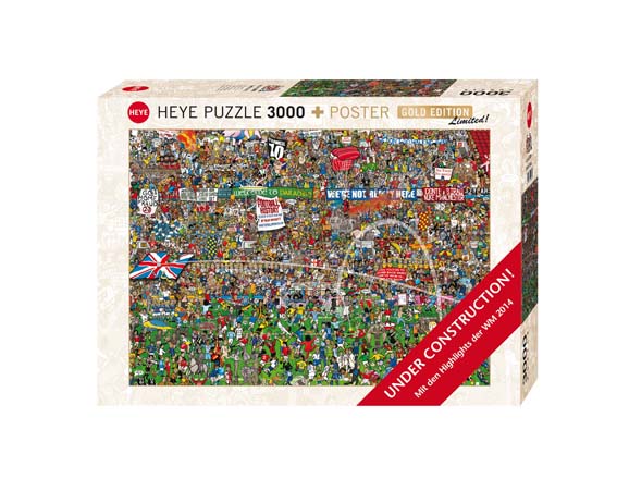 Ein erstes Update gibt es in diesem Sommer mit den spektakulärsten Ereignissen der WM 2014 in Brasilien. Heye stellt das einmalige Puzzle „Football History“ (http://www.heye-puzzle.de/football-history-88759) mit 3000 Teilen in limitierter Auflage von 2014 Stück mit hochwertiger Golddruck-Veredelung vor, in dem Bennett sein Werk mit den aktuellen Höhepunkten und dem neuen Weltmeister 2014 ergänzt. Es wird Ende August im Handel erhältlich sein und hat fertig gelegt die sagenhafte Größe von 116,5 x 83,5 cm. Zusätzlich darf man noch auf ein Poster und detaillierte Infos zu den abgebildeten Highlights gespannt sein.