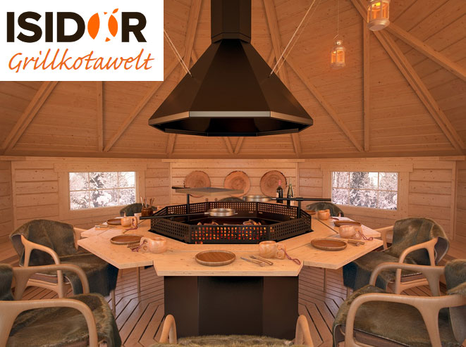 Pünktlich zum Sommerbeginn 2016 bringt ISIDOR nun die perfekte Kotaidee für Großfamilien, Vereine und Nachbarschaftsverbände auf den Markt: die große Kota mit Platz bis zu 21 Personen. Das XXL-Grillhäuschen ist knapp 15 m² groß und bietet ausreichend Platz, um größere Gruppen mit gegrillten Steaks und leckeren Würstchen zu verwöhnen. Der Grill in der Mitte der Kota kann sowohl mit Holz als auch Holzkohle befeuert werden.