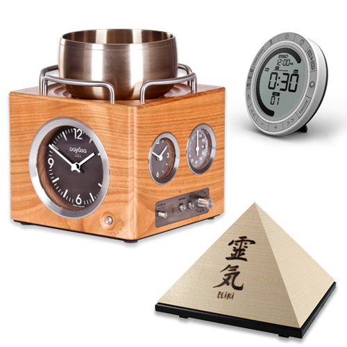 Dieser Premium-Meditationstimer bietet nicht nur die für Reiki erforderlichen Minuten-Intervalle in beliebig häufiger Wiederholung, sondern auch den angenehmen Ton einer echten japanischen Klangschale. Die hochwertig verarbeitete Dayasa kann allein schon durch ihr edles Design zum Wohlfühl-Ambiente der Behandlung beitragen. Die Dayasa Kaala Maha ist aus massivem Kirschbaumholz gefertigt, Lünetten und Reling sind aus gebürstetem Edelstahl. Sie hat zudem Stundengong und Countdown-Funktion und wird über Batterien betrieben. Die Klangschale lässt sich abnehmen und separat verwenden. Kosten: ab 750,00 EUR.
