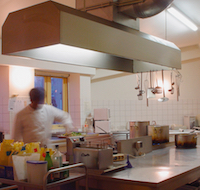 Leuchten müssen im Catering einiges aushalten können: Heißes Fett, Gardämpfe und hohe Temperaturen setzen ihnen zu. Eine robuste Konstruktion garantiert einen sicheren Betrieb. „In Großküchen sind Feuchtraumleuchten der Schutzart IP 54 zu empfehlen. Im Herdbereich muss zudem die chemische Beständigkeit der Leuchten garantiert sein“, betont Waldorf. Leuchten sollten in Gruppen schaltbar und dimmbar sein und parallel zur Fensterfront angeordnet werden.