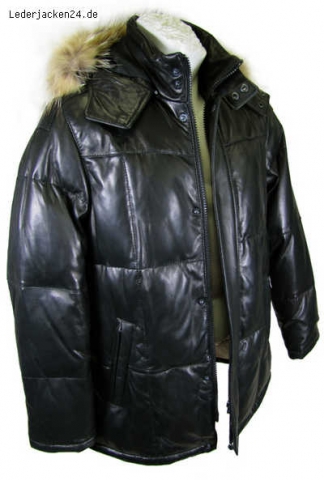 Zu den aktuellen Angeboten von Pierre Cardin bei Lederjacken24 gehören Daunen-Lederjacken der Luxus-Premium-Klasse für Herren. Da ist zum einen eine schwarze Herren-Lederjacke mit Daunenfütterung im Blouson-Stil. Diese Lederjacke ist aus feinstem Lamm-Nappaleder gearbeitet und besticht mit ihrer hochwertigen Verarbeitung und ihrem komfortablen Sitz. Der hoch schließende Frontreißverschluss, die beiden Seitentaschen mit Leiste sowie die Lederbündchen an den Ärmeln und am Saum unterstreichen die top-modische Blouson-Optik. Die Jacke verfügt über eine gefütterte Lederkapuze, die mit Echtpelz besetzt und abnehmbar ist. Die Fütterung besteht aus edlen Schneegansdaunen (70% Daunen und 30% Federn). Die schwarze Herren Lederjacke mit Daunenfütterung im Blouson-Stil ist in zwei Ausführungen erhältlich – einmal mit gelbem und einmal mit grauem Polyester-Innenfutter. Ein weiteres aktuelles Angebot von Pierre Cardin bei Lederjacken24 ist die haselnussbraune Herren-Lederjacke mit Daunenfütterung. Sie ist klassisch geschnitten, schließt am Saum gerade ab, und verfügt im Frontbereich über eine Druckknopfleiste. Sie ist aus einem feinem, zarten Lamm-Nappaleder gearbeitet und verfügt über eine hochwertige Daunenfütterung.
