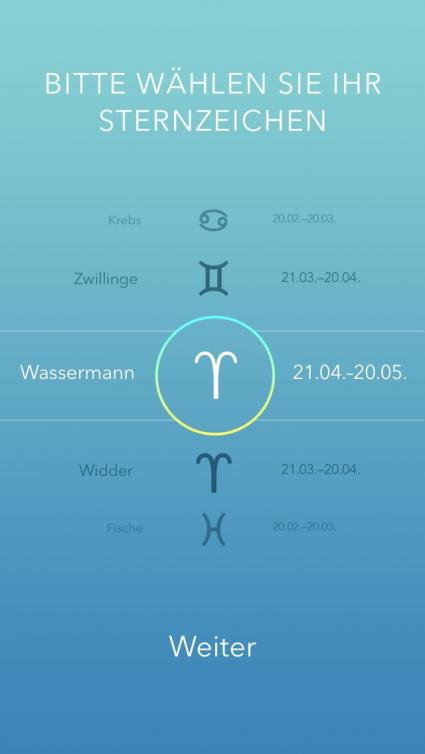 Sternzeichen-Angaben und erhält dort einen Überblick über seine