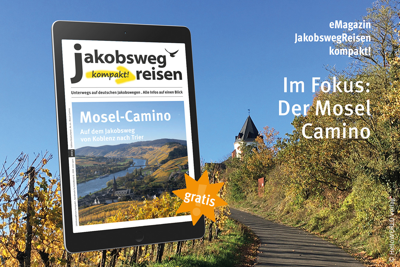Ein ideales Umfeld für die kleine Reise zu sich selbst bieten die europäischen Jakobswege. Dabei sind es längst nicht mehr nur die populären Routen wie der Camino Frances, die zu einer bewegten Auszeit einladen. Auch die Jakobswege in Deutschland erfreuen sich immer größerer Beliebtheit, punkten sie doch mit schönen Landschaften, Gastfreundschaft und Gemütlichkeit. Besonders beliebt: der Mosel-Camino. Weshalb? Antworten liefert jetzt die komplett überarbeitete Neuauflage des eMagazins JakobswegReisen kompakt!.