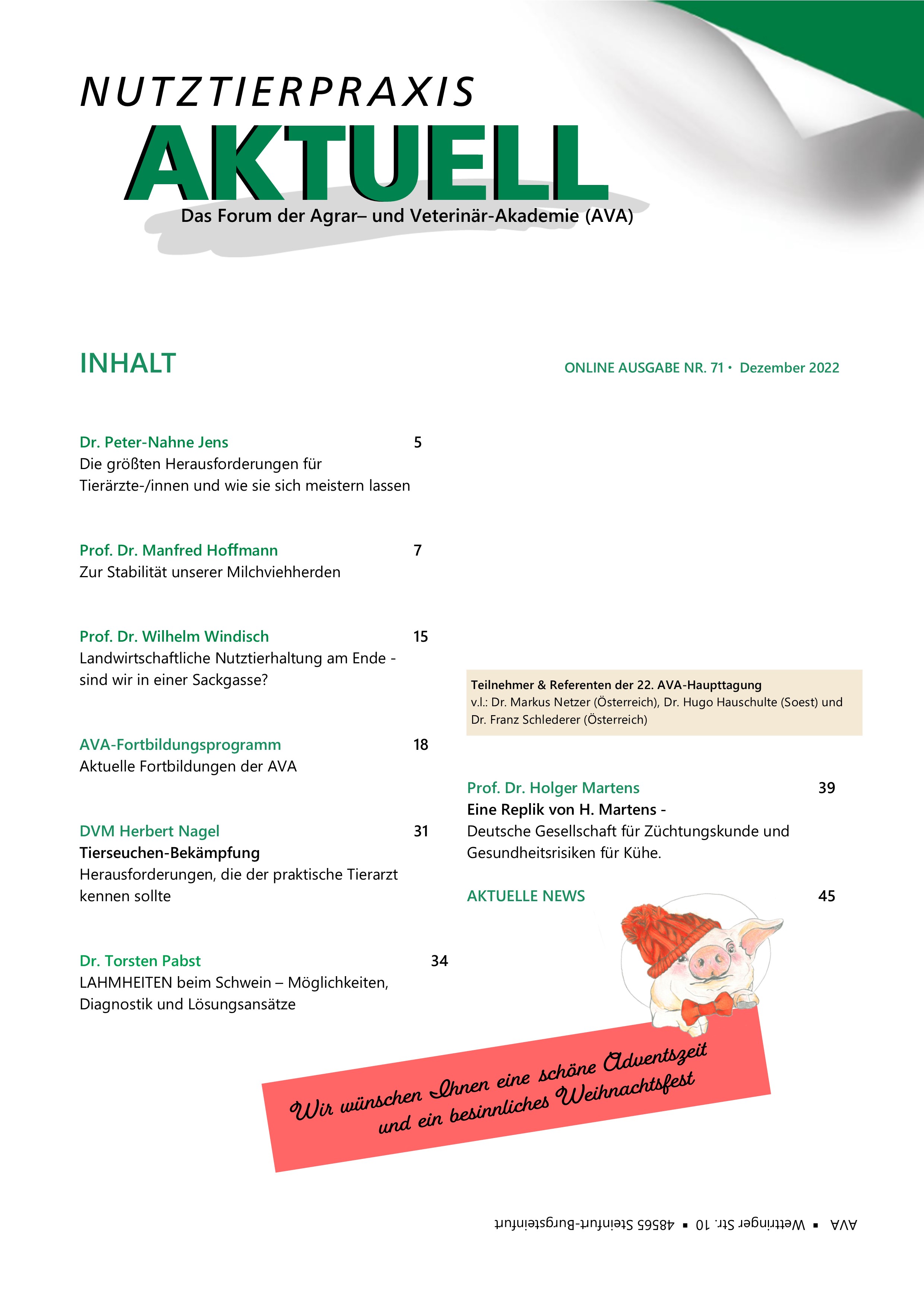 Die neue 70 Seiten umfassende NUTZTIERPRAXIS AKTUELL (NPA) Nr. 71 steht im AVA-Shop kostenpflichtig online zur Verfügung: