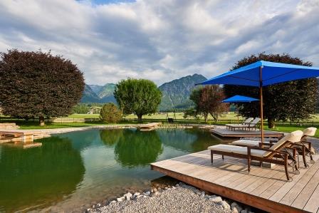 SCHÜLE’S Naturteich Erfrischende Aussichten: Das SCHÜLE’S Gesundheitsresort & Spa in Oberstdorf verwöhnt seine Gäste seit kurzem mit seinem neuen Naturteich PanoramaQUELL. Inmitten des großen Hotelgartens vor beeindruckender Alpenkulisse gelegen, mutet der 450 Quadratmeter große Teich wie ein kleiner Bergsee an. Er lockt zum Schwimmen unter freiem Himmel, zur Abkühlung an heißen Sommertagen und Entspannung am Wasser. Rund um die neue Oase im Garten findet sich für jeden ein Plätzchen auf der großen Liegewiese. Das auf das Naturheilverfahren Kneipp spezialisierte Hotel verzichtet bei der Reinigung und Wasseraufbereitung mit Pflanzen und Mikroorganismen vollständig auf chemische Zusatzstoffe wie Chlor. Der PanoramaQUELL ist ganzjährig von morgens bis abends für Gäste zugänglich. Da er nicht künstlich erwärmt wird, ist die Wassertemperatur abhängig von der Witterung und variiert zwischen kalten bis angenehmen Badegraden. Für Erholungssuchende in den warmen Monaten bietet das Hotel noch bis zum 2. September 2017 die Pauschale „SommerFrische“ ab 775 Euro pro Person im Doppelzimmer. Im Preis inbegriffen sind fünf Übernachtungen, Verwöhnpension mit Frühstücksbuffet, Vitalbuffet am Mittag, Fünf-Gang-Wahlmenü am Abend, ein Kaiserbad, ein Heubett, eine Bergbahnfahrt sowie eine Leih-Wanderausrüstung mit Stöcken, Brotzeiten und Rucksack. Weitere Informationen finden sich im Internet unter www.schueles.com.