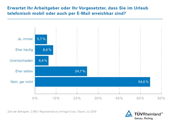 Umfrage: Fast 80 Prozent aller Angestellten können im Urlaub wirklich „abschalten“ / TÜV Rheinland: Repräsentative Umfrage zur Erreichbarkeit in der Urlaubszeit (FOTO)