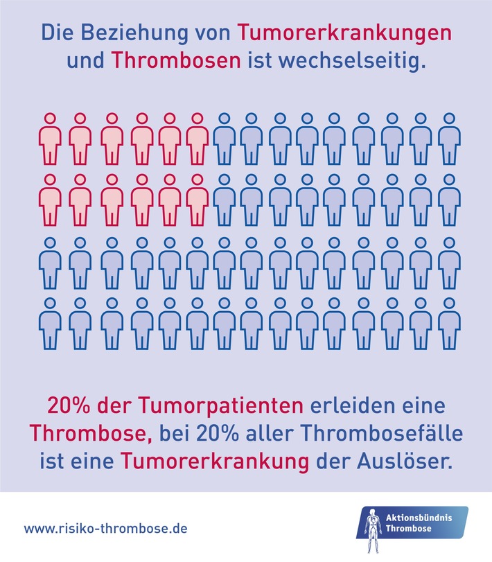 wechselseitig: 20 % der Krebspatienten erleiden eine Thrombose, bei